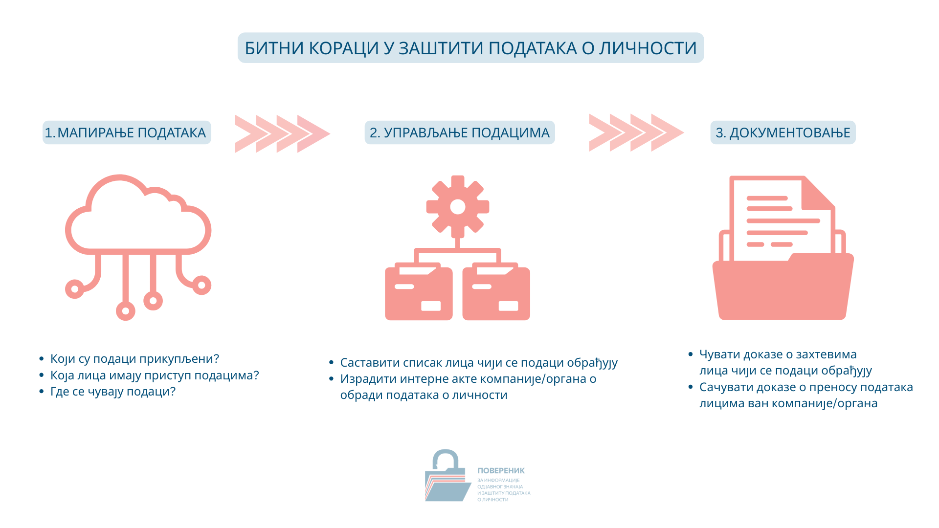 • otvaranje zasebnog imejl naloga lica za zaštitu podataka o ličnosti, a NE korišćenje/dostavljanje Povereniku opšteg imejla za kontakt, ili imejla putem kojeg korespondira veći broj lica ili lica čija korespondencija nije u vezi sa obavljanjem poslova zaštite podataka o ličnosti;