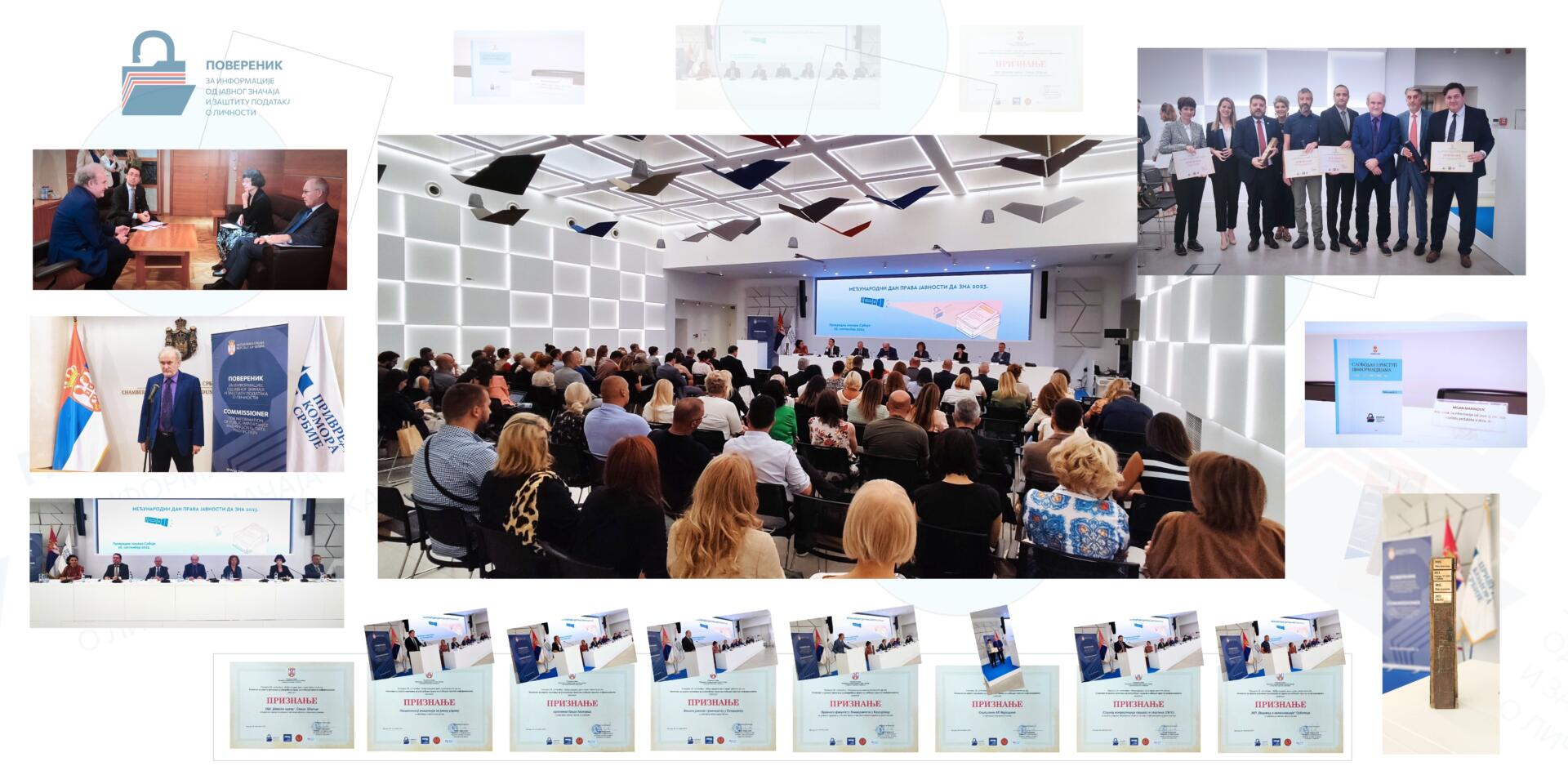 Ovom prilikom dodeljene su nagrade organima za unapređenje prava na slobodan pristup informacijama za 2023. godinu i to u kategoriji republičkih organa-Nacionalnoj akademiji za javnu upravu; u kategoriji pravosudnih organa-Višem javnom tužilaštvu u Smederevu, u kategoriji organa lokalne samouprave-organima Grada Leskovca; u kategoriji pokrajinskih organa- Skupštini AP Vojvodine. Kako je Izmenama i dopunama zakona proširen krug organa vlasti, ove godine smo uveli i nagradu za nove organe, kao što je kategorija ostalih organa vlasti koju je dobio JKP „Vodovod i kanalizacija“ Subotica. Pored toga ustanovljene su i 2 specijalne nagrade. Prvu specijalnu nagradu za doprinos edukaciji u oblasti prava na pristup informacijama od javnog značaja dobio je Pravni fakultet Univerziteta u Kragujevcu. Dok je specijalnu nagradu za izvršenje zakonskih obaveza u otežanim uslovima dobila OŠ sa Kosova „Šarski odred“, Sevce- Štrpce, imajuću u vidu da su u izuzetno teškim uslovima rada ispunili svoje zakonske obaveze koje mnogi organi iz Centralne Srbije i AP Vojvodine nisu uradili. Nagradu za poseban doprinos afirmisanju prava na pristup informacijama od javnog značaja nemamo priliku da dodelimo svake godine, ali smo je ove godine sa zadovoljstvom dodelili Stalnoj konferenciji gradova i opština (SKGO) koja je brojnim organima vlasti na lokalnom nivou, a posebno mesnim zajednicama pomogla u ispunjenju zakonske obaveze objavljivanja informatora o radu.