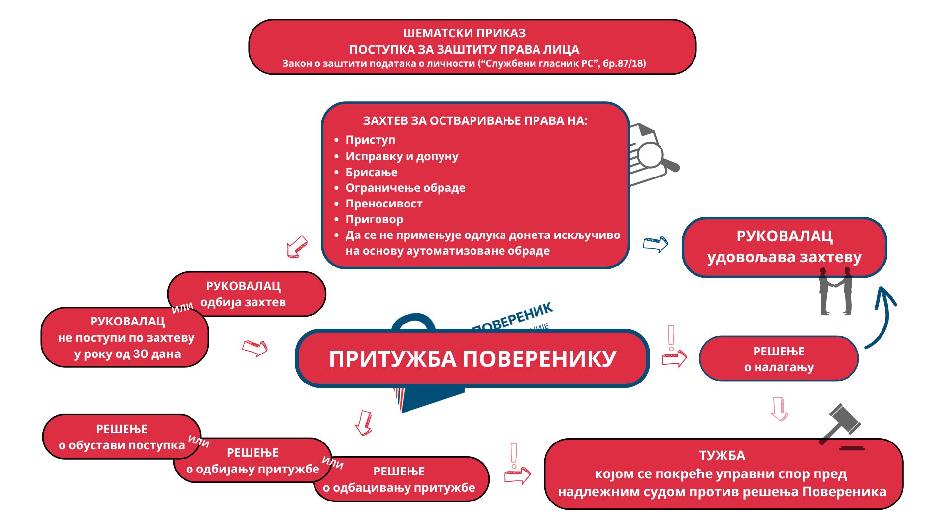 Ako rukovalac ne postupi po zahtevu lica na koje se podaci odnose dužan je da o razlozima za nepostupanje obavesti to lice bez odlaganja, a najkasnije u roku od 30 dana od dana prijema zahteva, kao i o pravu na podnošenje pritužbe Povereniku, odnosno tužbe sudu.